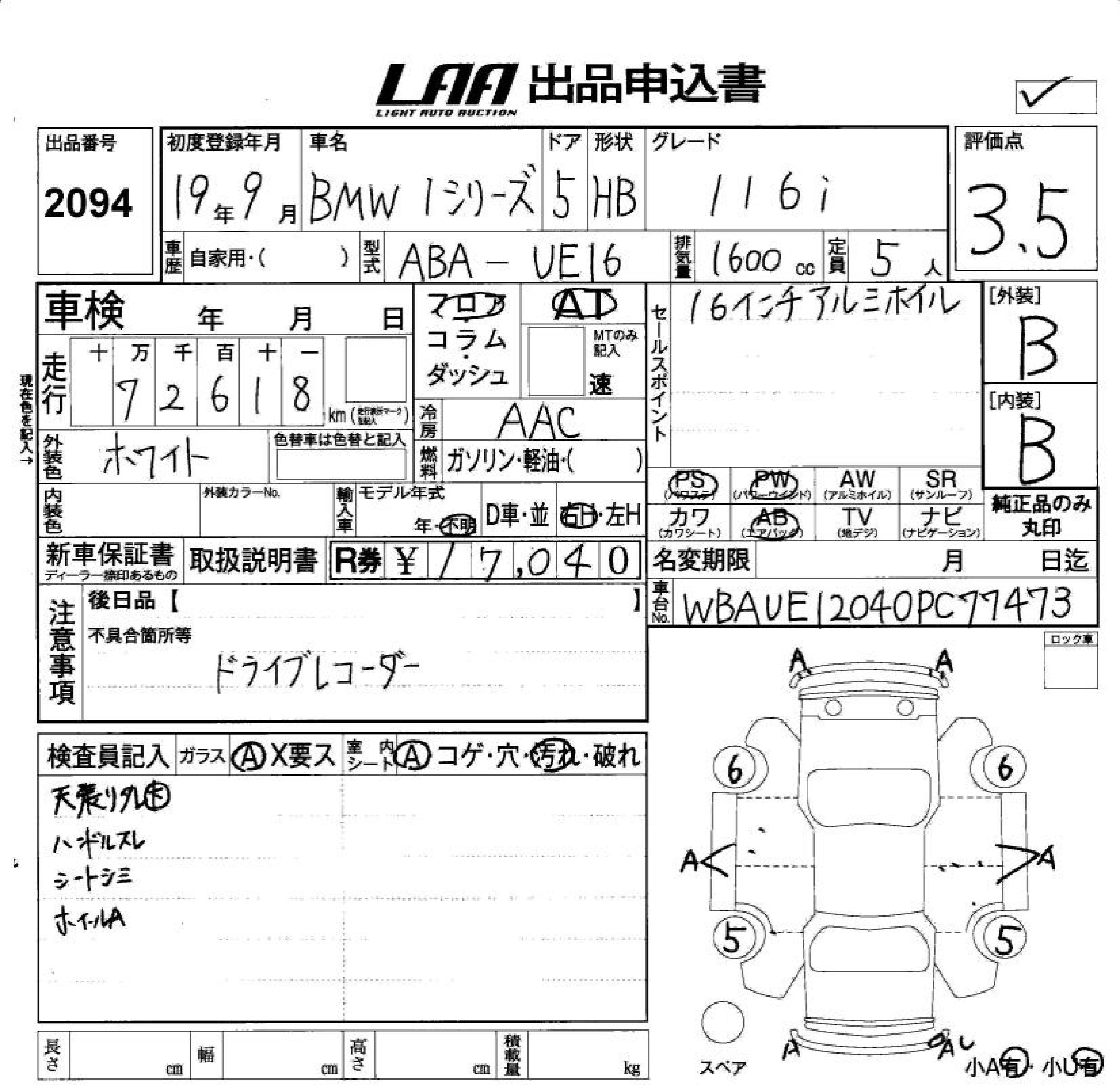 BMW 1 SERIES 116i - лот 2094
