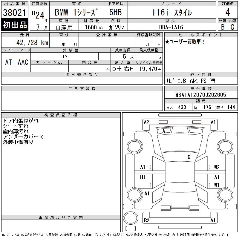 BMW 1 SERIES 116I STYLE - лот 38021