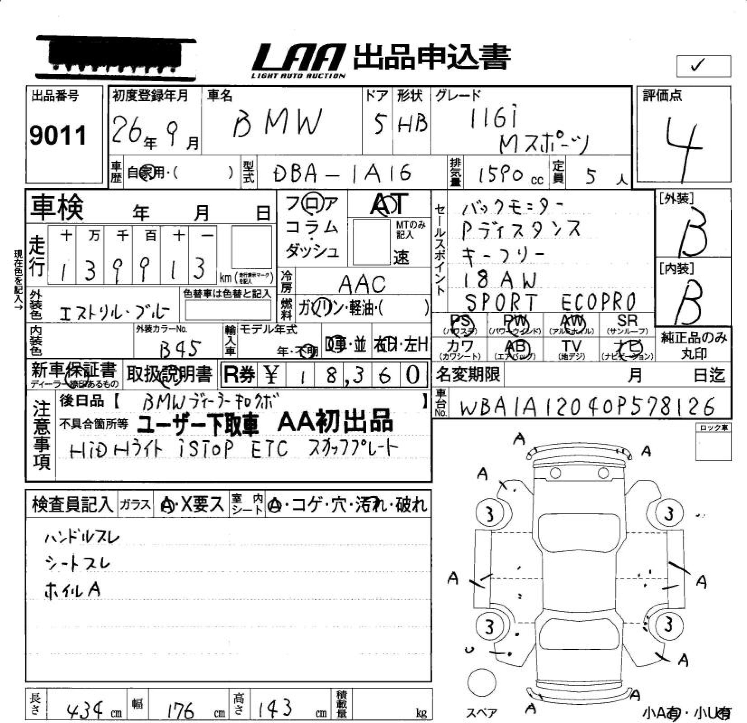 BMW 1 SERIES 116I M SPORT - лот 9011
