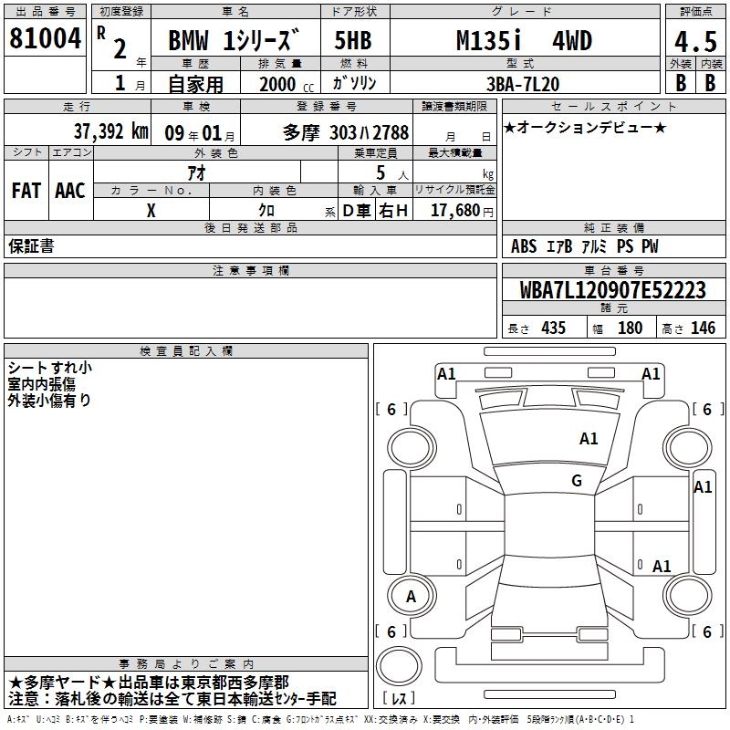 BMW 1 SERIES M135i 4WD - лот 81004