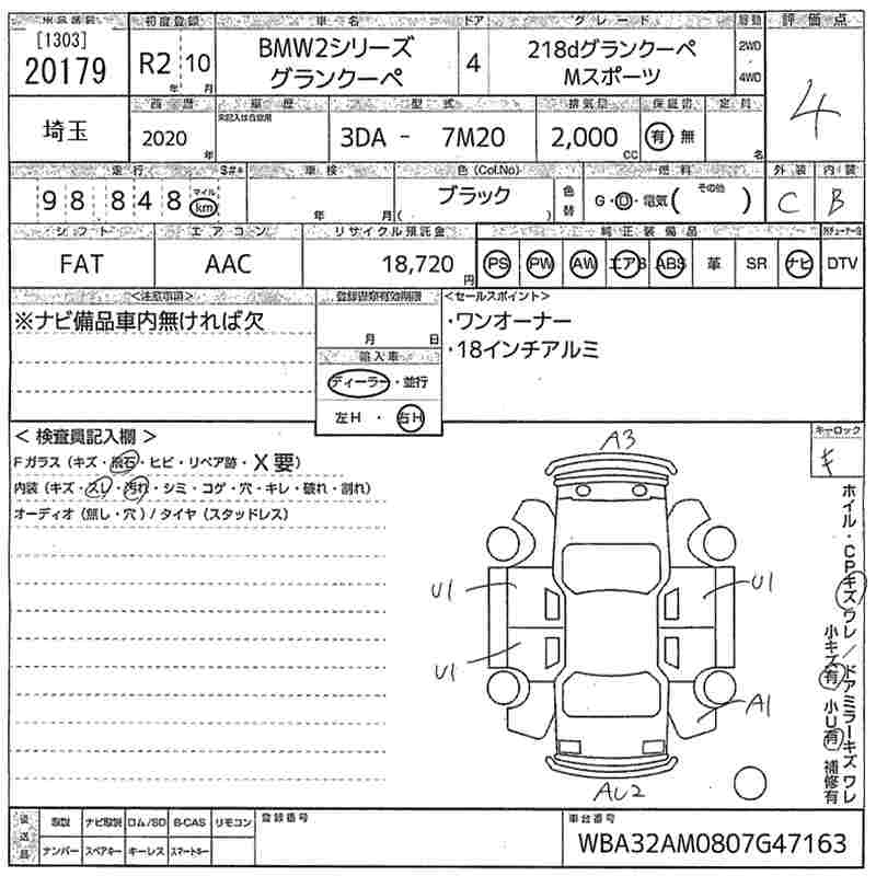 BMW 1 SERIES 218D GRAN COUPE M SPORT - лот 20179