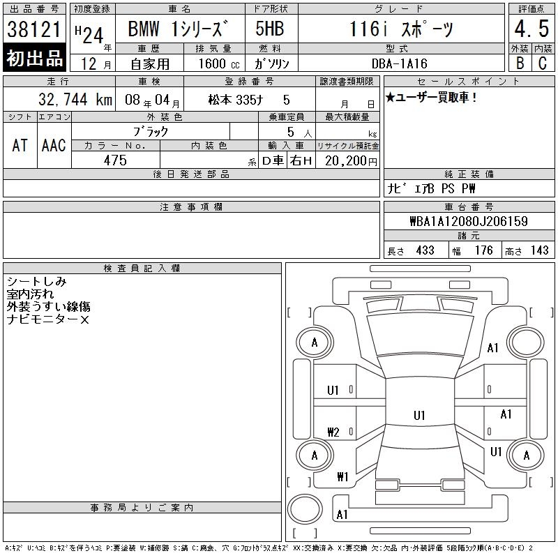 BMW 1 SERIES 116I SPORT - лот 38121