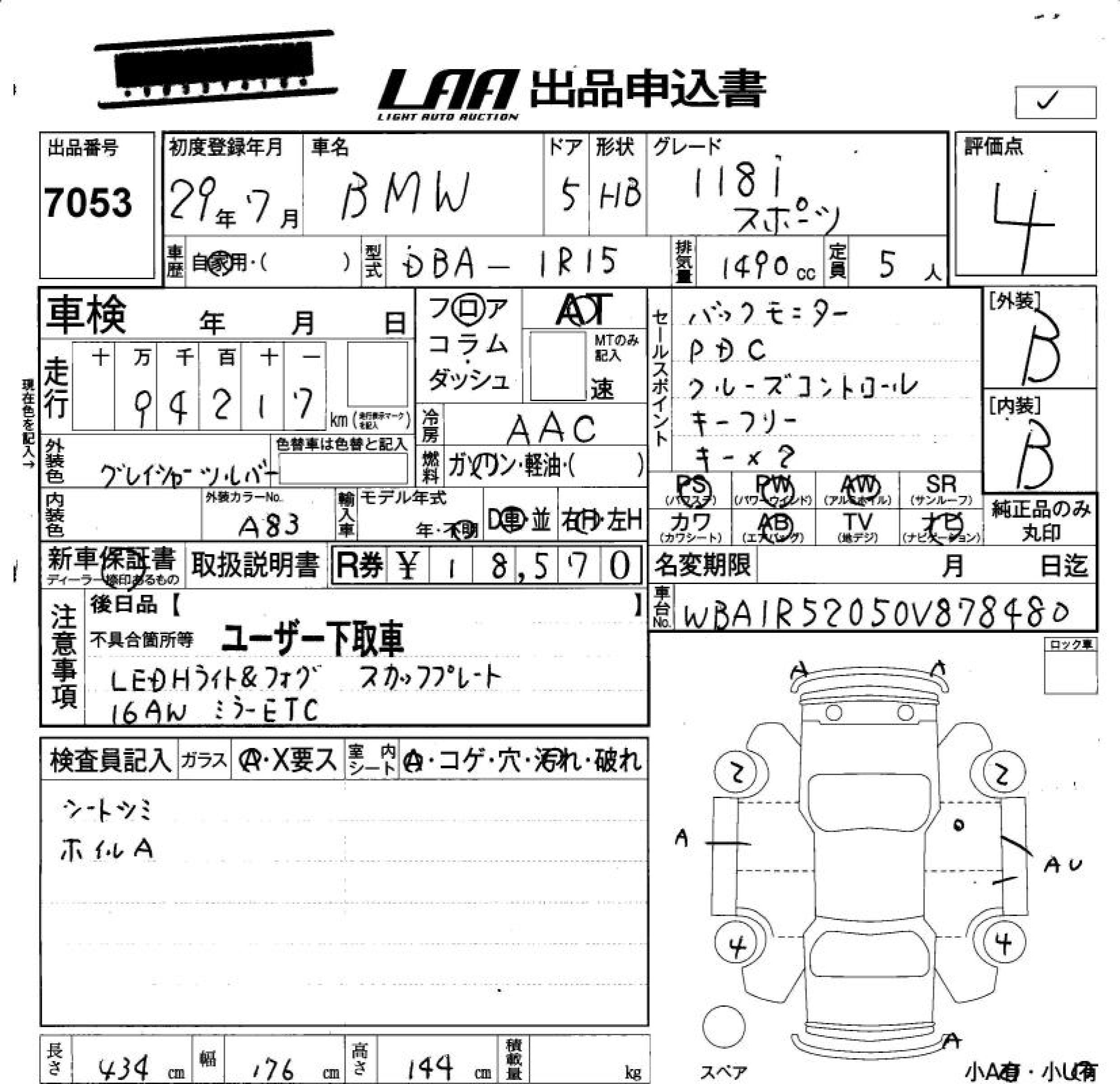 BMW 1 SERIES - лот 7053