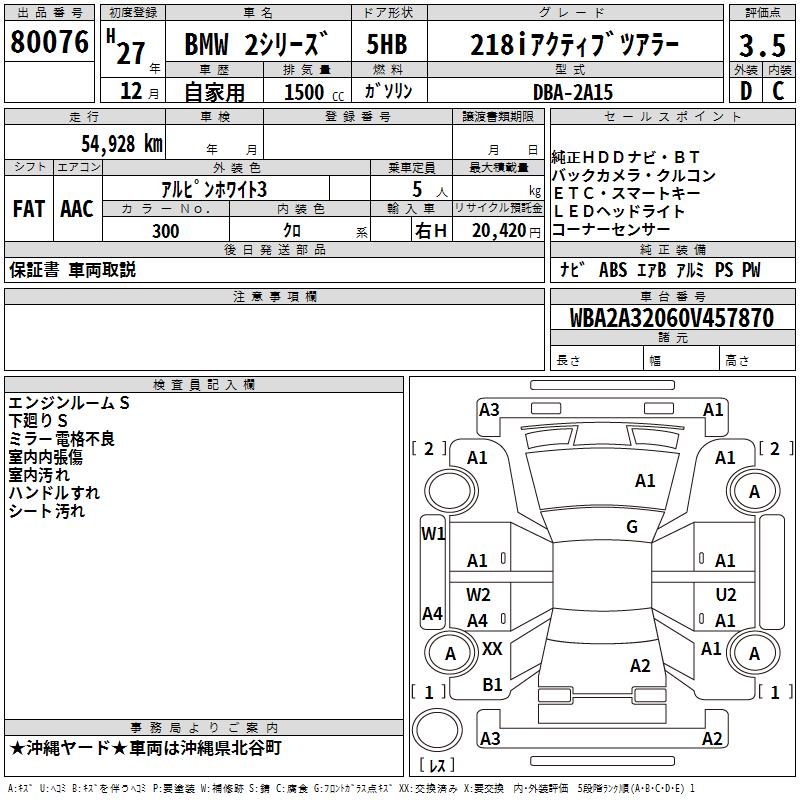 BMW 2 SERIES 218I ACTIVE TOURER - лот 80076