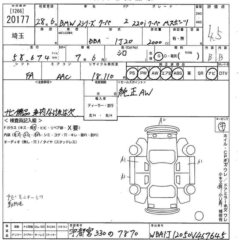 BMW 2 SERIES 220I COUPE M SPORT - лот 20177