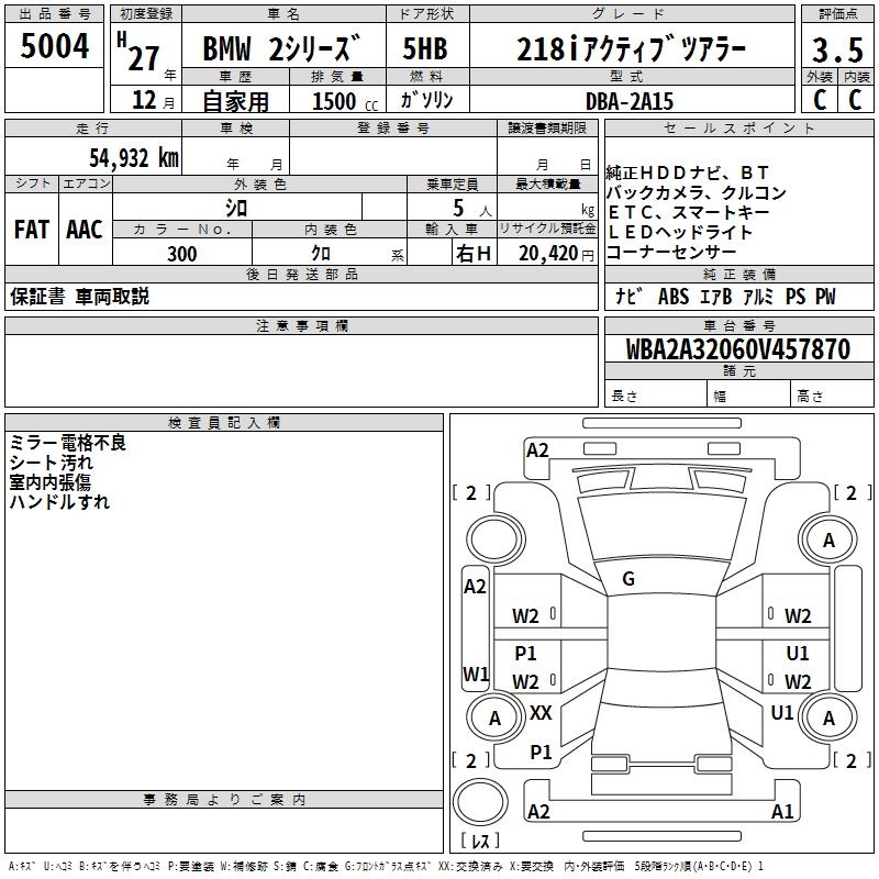 BMW 2 SERIES 218I ACTIVE TOURER - лот 5004