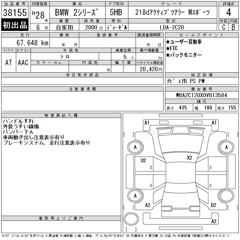 BMW 2 SERIES 218D ACTIVE TOURER M SPOILER - лот 38155