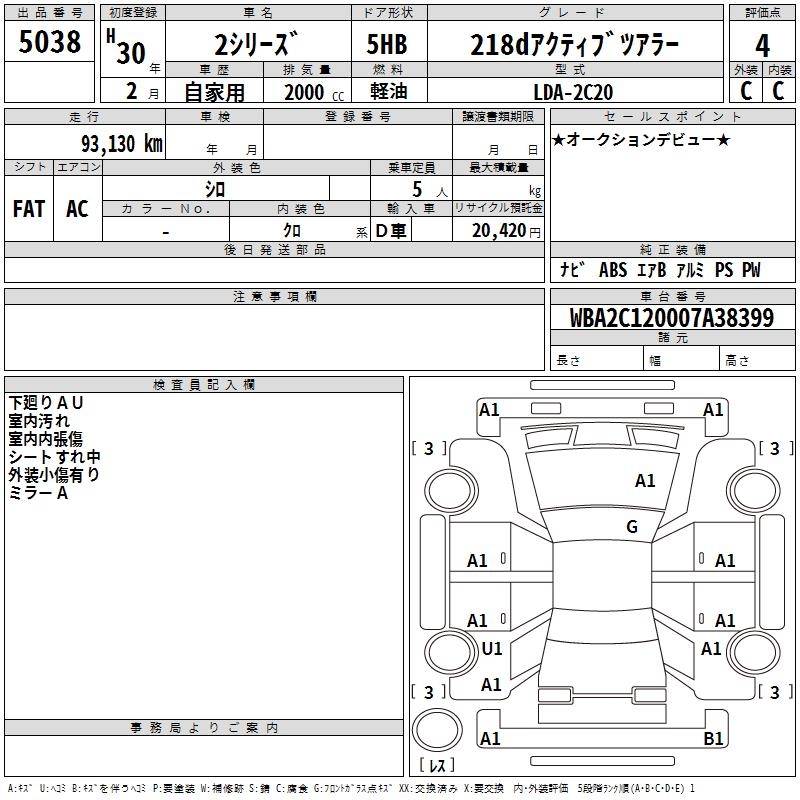 BMW 2 SERIES 218D ACTIVE TOURER - лот 5038