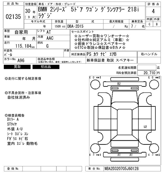 BMW 2 SERIES GLANZA LA-218I RUG JI - лот 2135