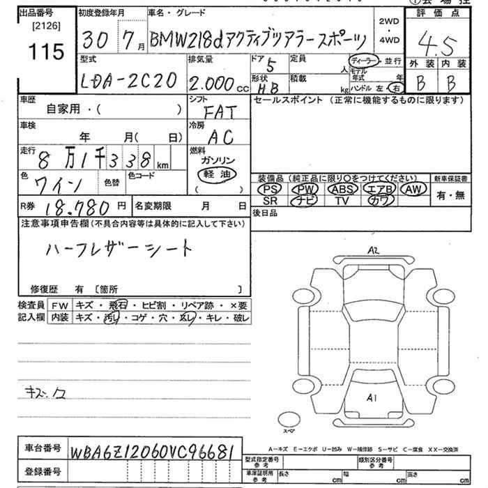 BMW 2 SERIES 218D ACTIVE TOURER M SPORT - лот 115