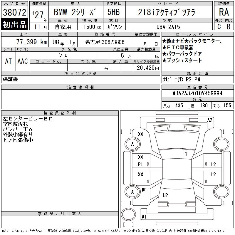 BMW 2 SERIES 218I ACTIVE TOURER - лот 38072