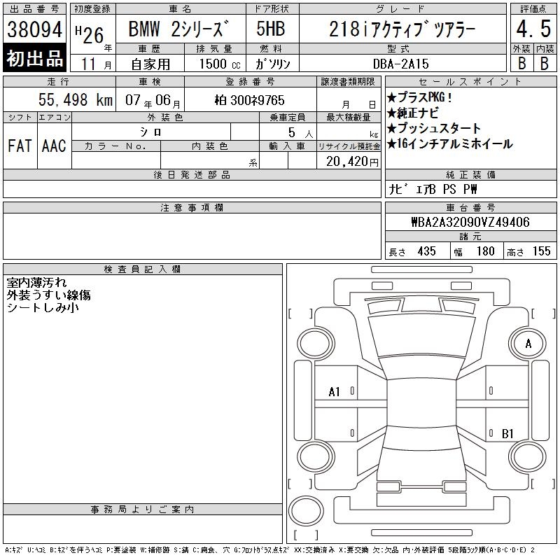BMW 2 SERIES 218I ACTIVE TOURER - лот 38094