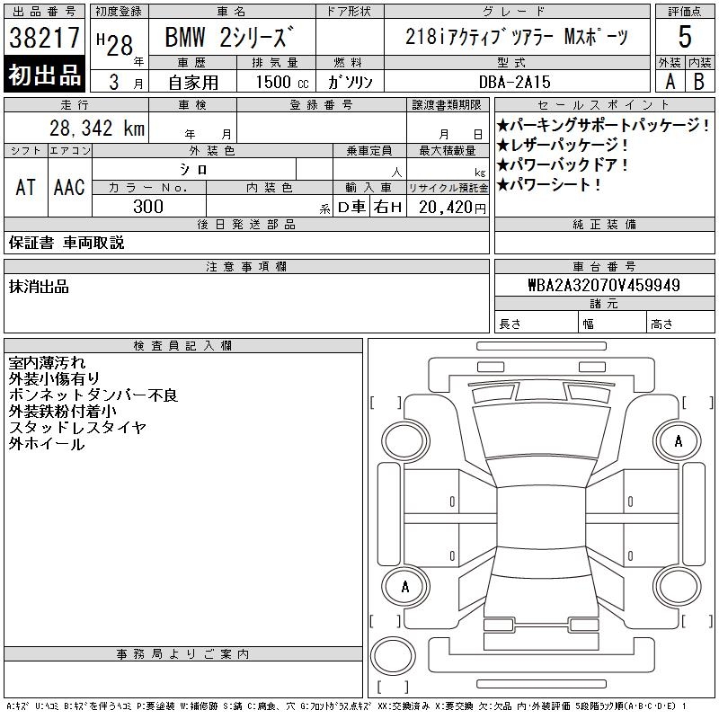 BMW 2 SERIES 218I ACTIVE TOURER M SPOILER - лот 38217