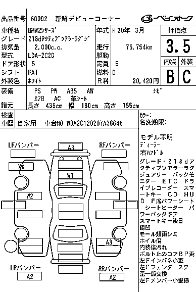 BMW 2 SERIES 218D ACTIVE TOURER RUG JI - лот 60002