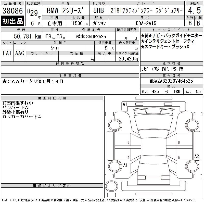 BMW 2 SERIES 218I ACTIVE TOURER LUXUR - лот 38086