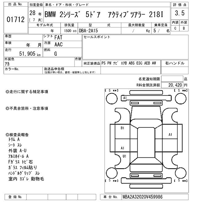 BMW 2 SERIES ACTIVE TOURER 218I - лот 1712
