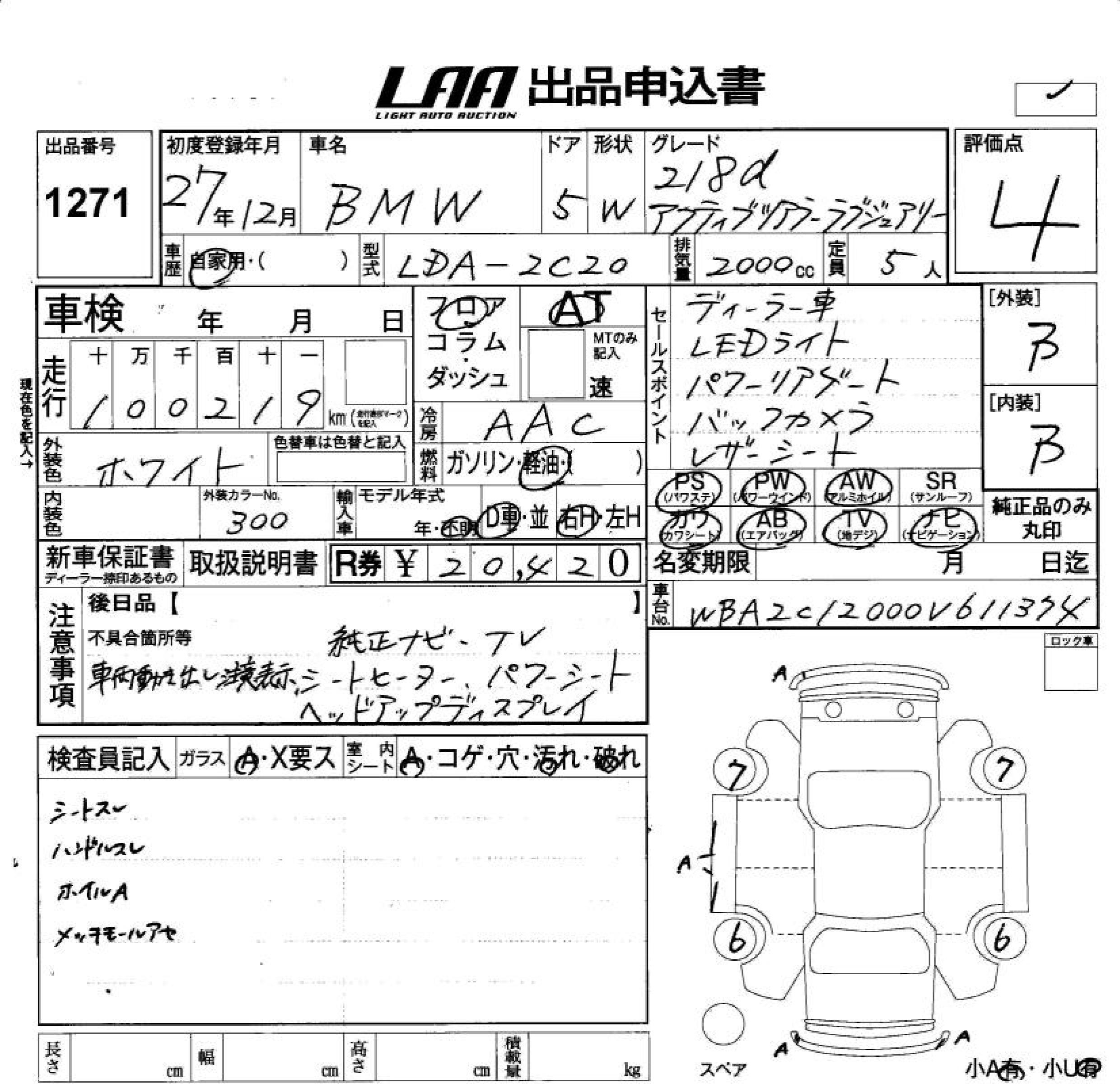 BMW 2 SERIES 218D ACTIVE TOURER LA - лот 1271