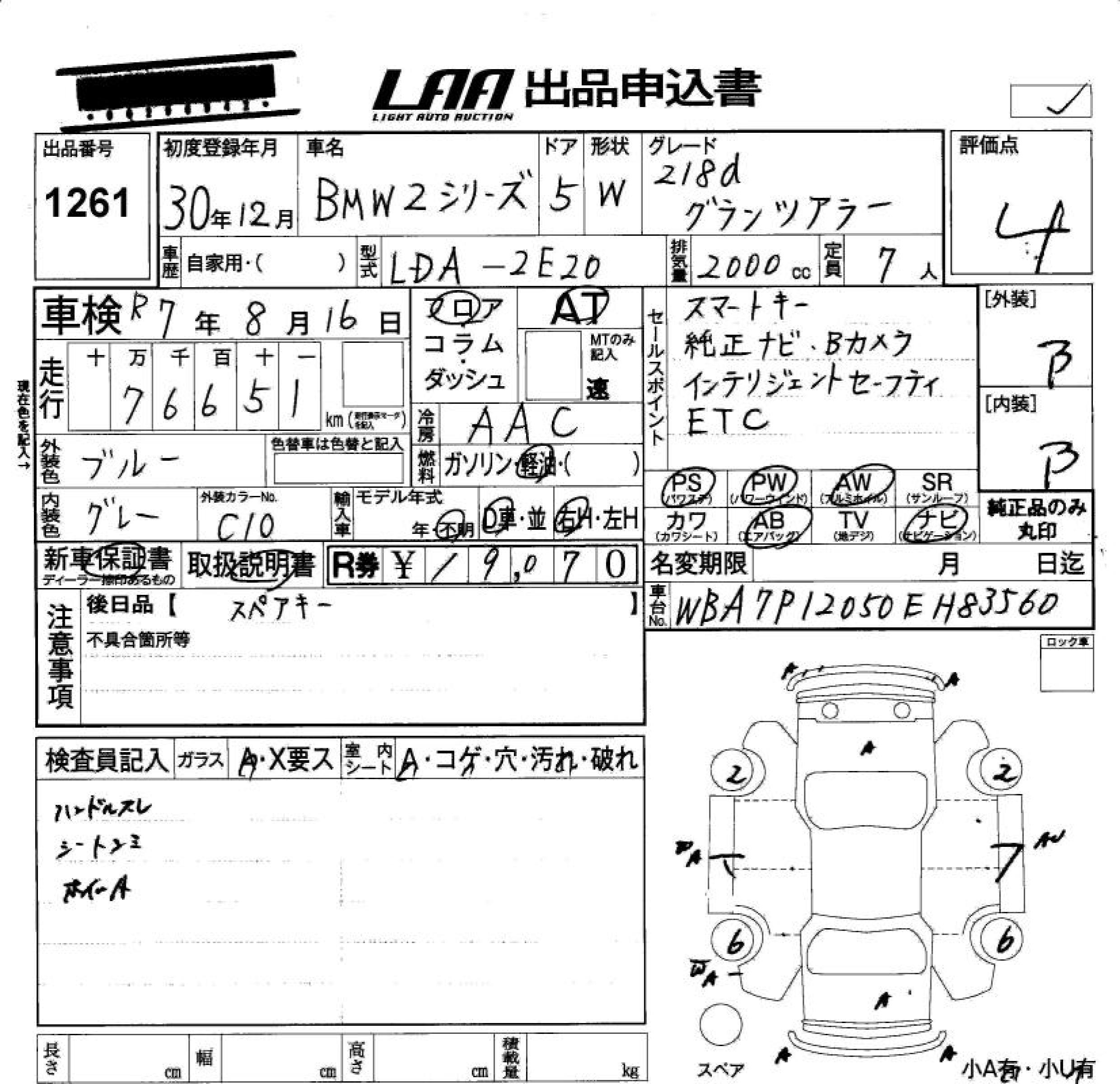 BMW 2 SERIES 218D GLANZA LA- - лот 1261