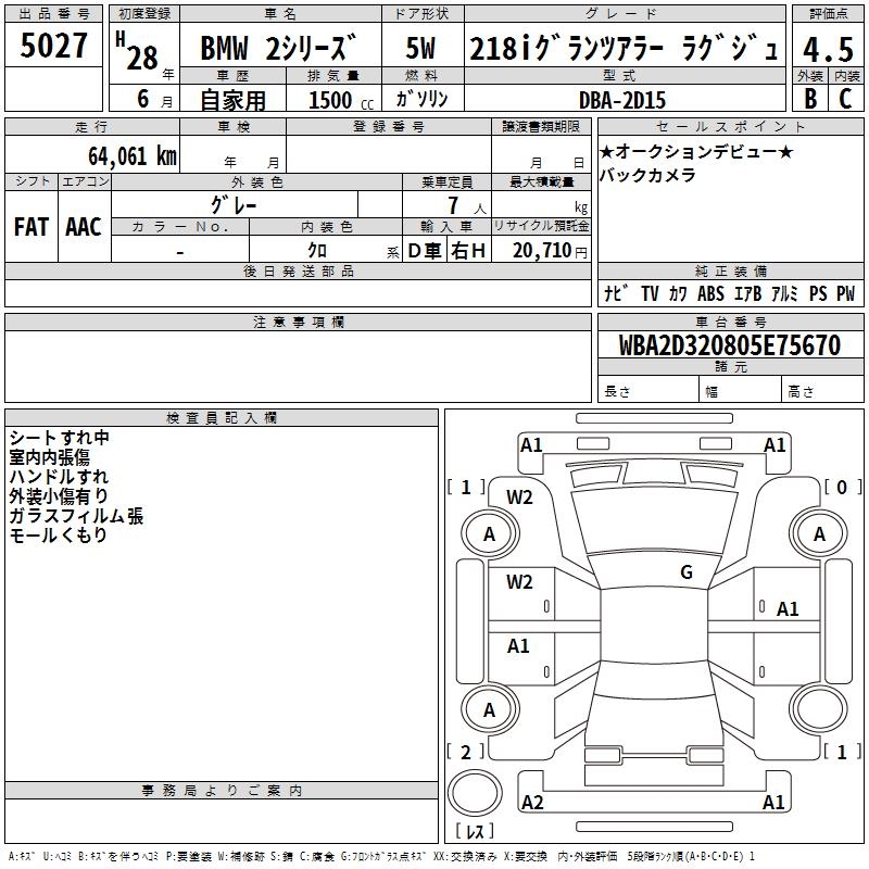 BMW 2 SERIES 218I GLANZA LA- LUXUR - лот 5027