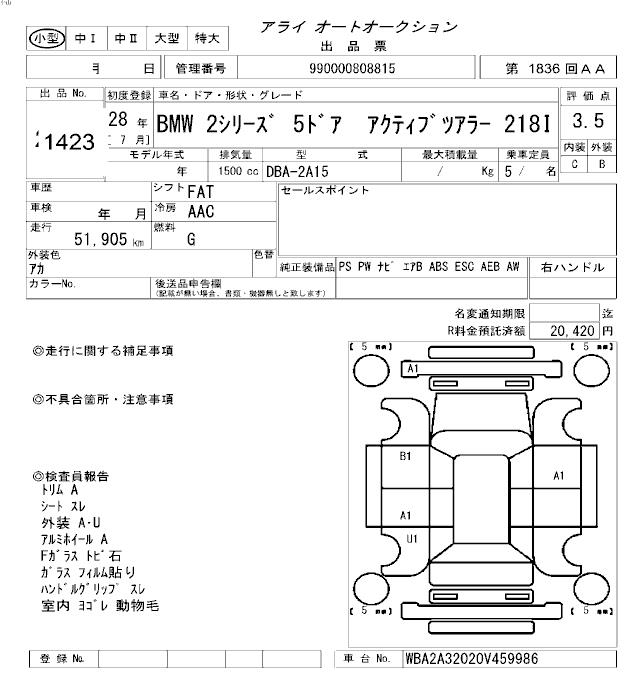 BMW 2 SERIES ACTIVE TOURER 218I - лот 1423