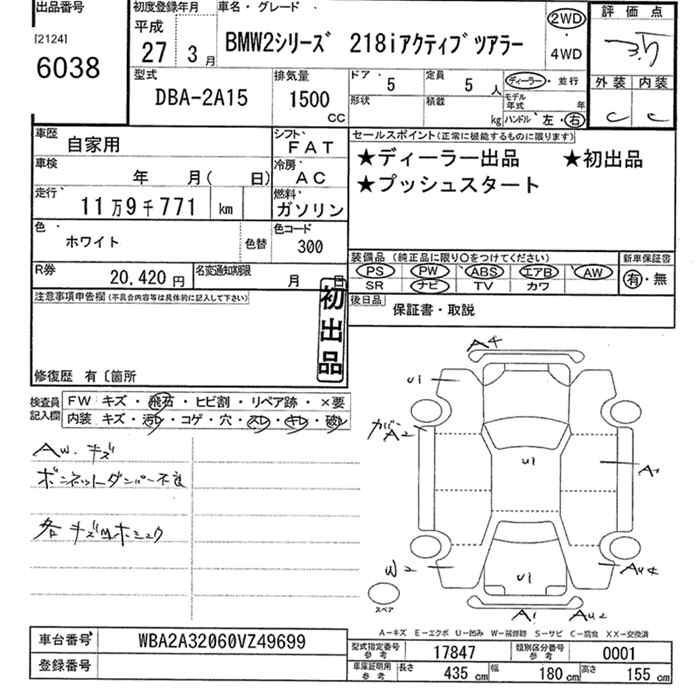 BMW 2 SERIES 218I ACTIVE TOURER - лот 6038