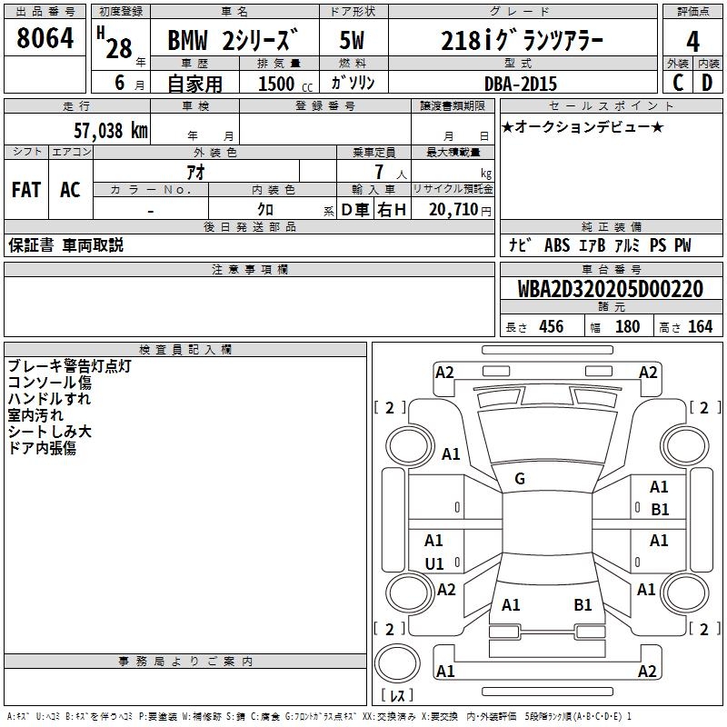 BMW 2 SERIES 218I GLANZA LA- - лот 8064