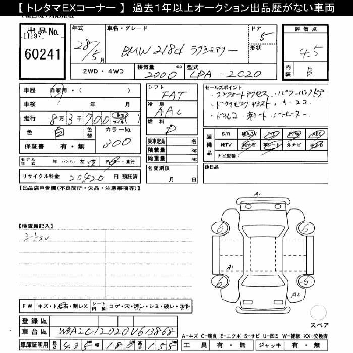 BMW 2 SERIES 218D LUXURY - лот 60241