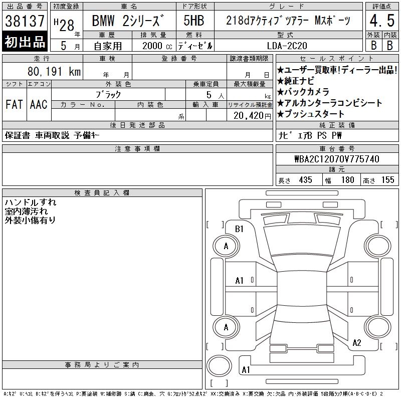 BMW 2 SERIES 218D ACTIVE TOURER M SPOILER - лот 38137