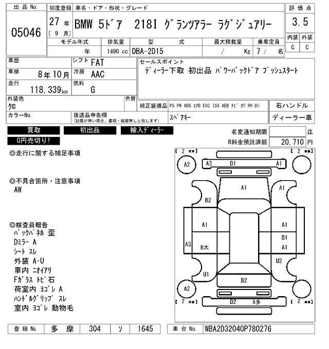 BMW 2 SERIES 218I GLANZA LA- LUXURY - лот 5046