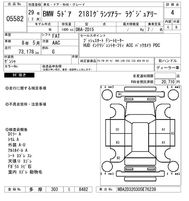BMW 2 SERIES 218I GLANZA LA- LUXURY - лот 5582