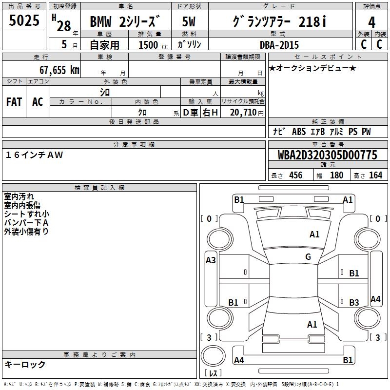 BMW 2 SERIES GLANZA LA-218I - лот 5025