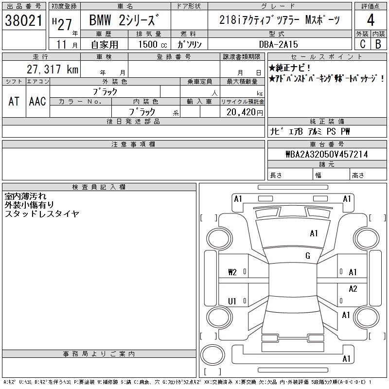 BMW 2 SERIES 218I ACTIVE TOURER M SPOILER - лот 38021