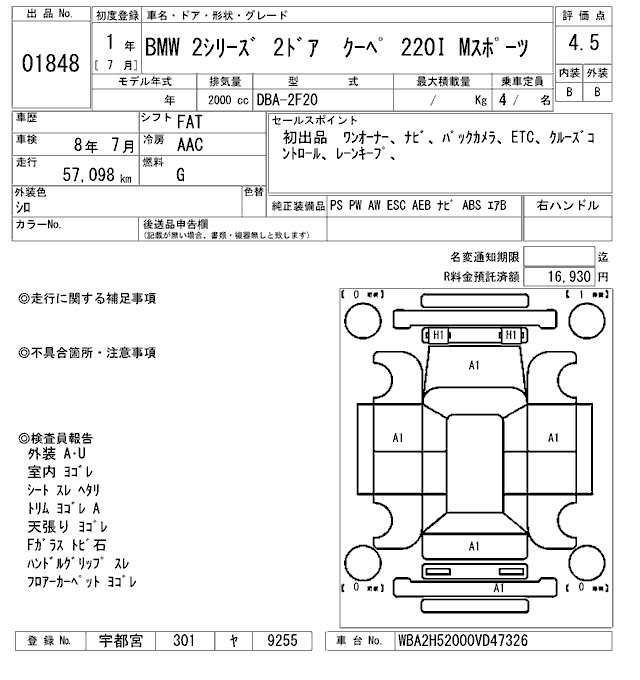 BMW 2 SERIES COUPE 220I M SPORT - лот 1848