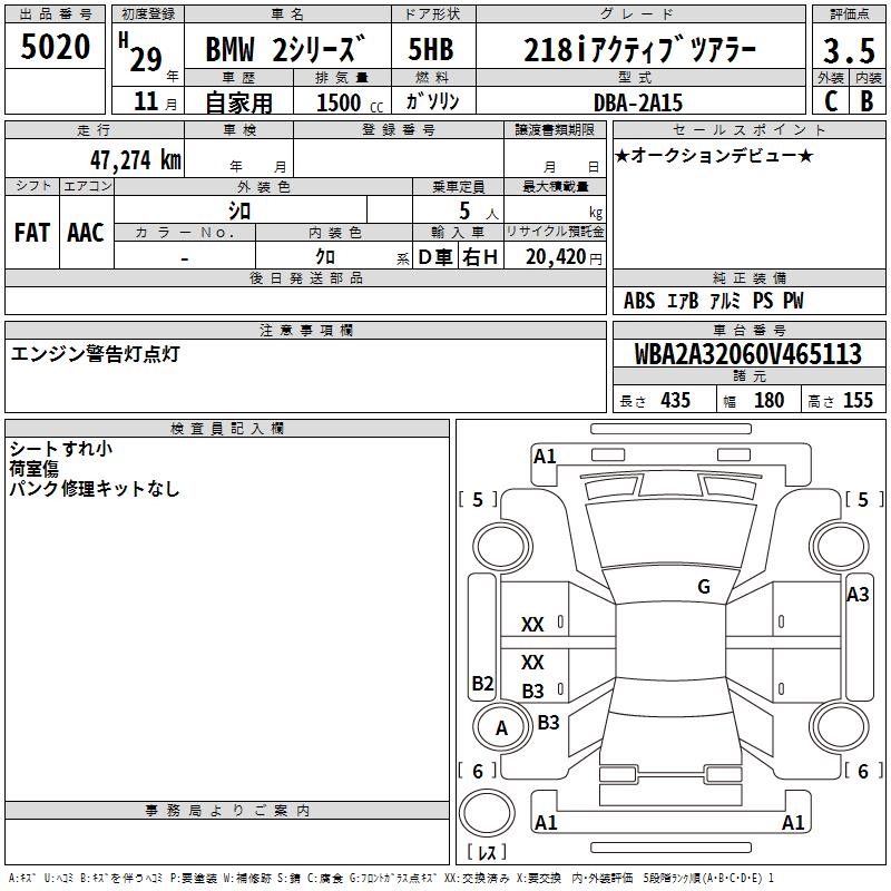 BMW 2 SERIES 218I ACTIVE TOURER - лот 5020