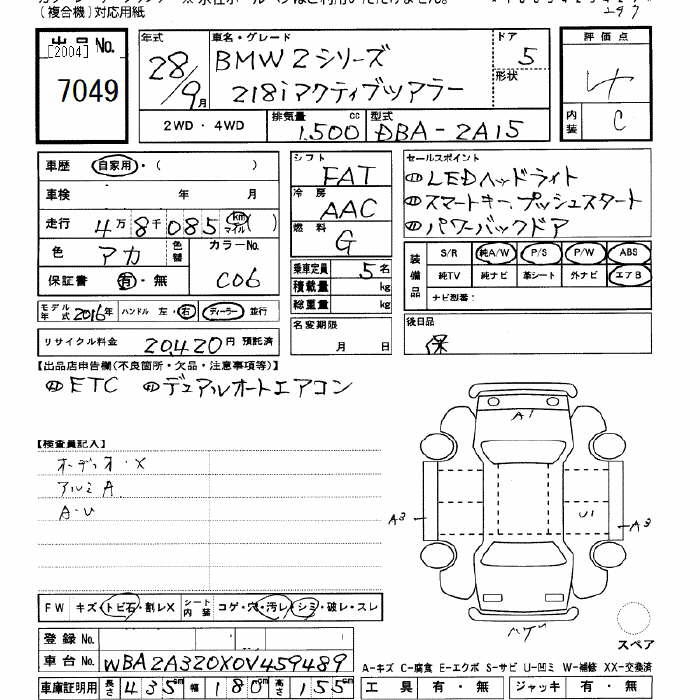BMW 2 SERIES 218I ACTIVE TOURER - лот 7049