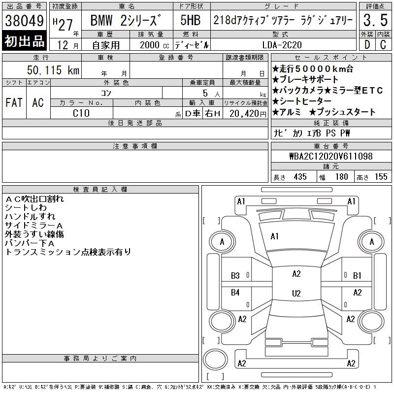 BMW 2 SERIES 218D ACTIVE TOURER LUXUR - лот 38049