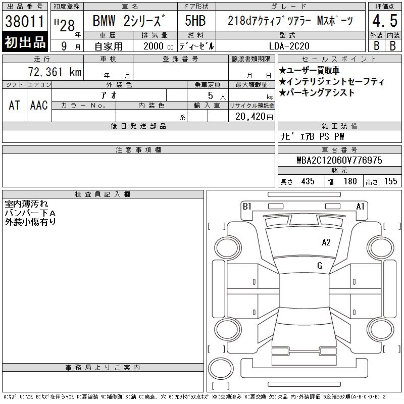 BMW 2 SERIES 218D ACTIVE TOURER M SPOILER - лот 38011