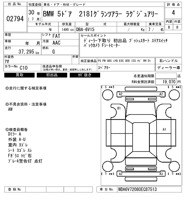 BMW 2 SERIES 218I GLANZA LA- LUXURY - лот 2794
