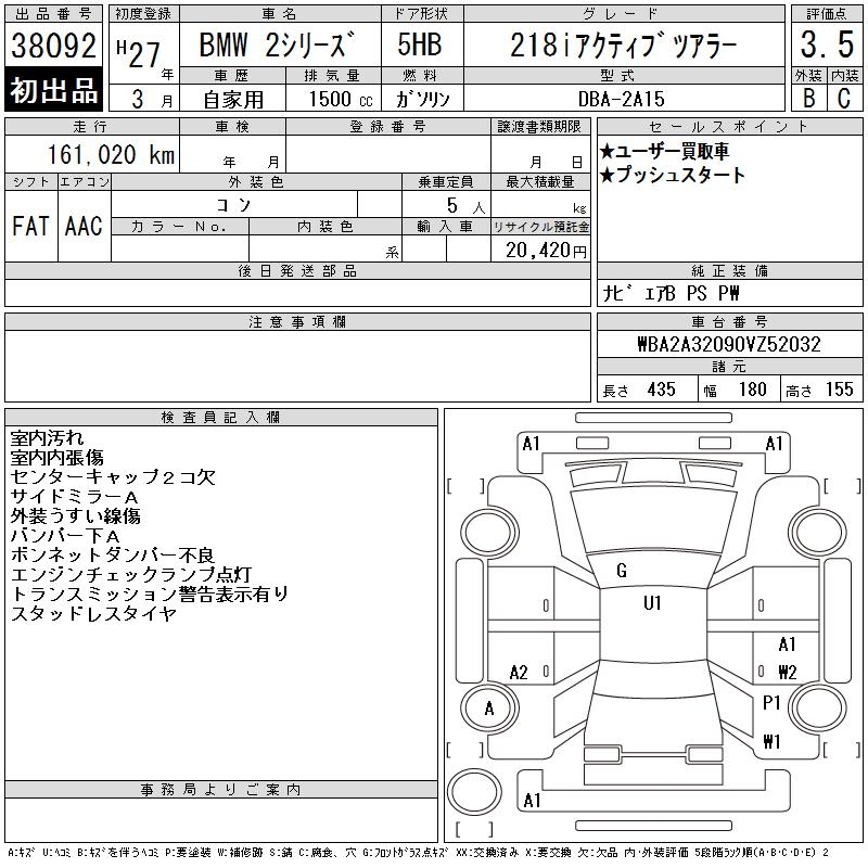 BMW 2 SERIES 218I ACTIVE TOURER - лот 38092