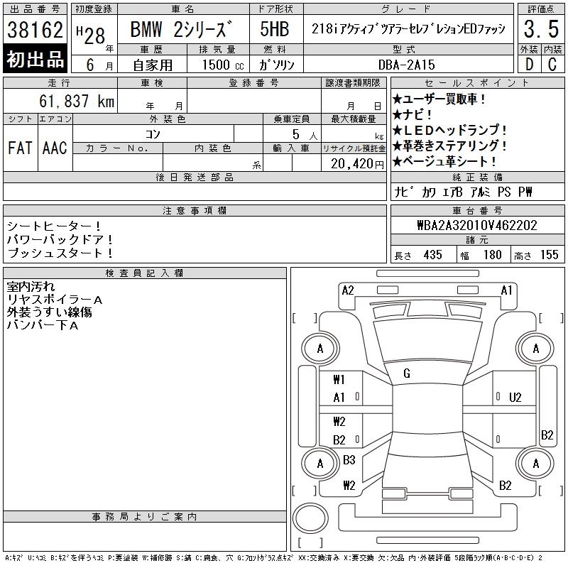BMW 2 SERIES 218I ACTY TOURER CELEB EDFASI - лот 38162
