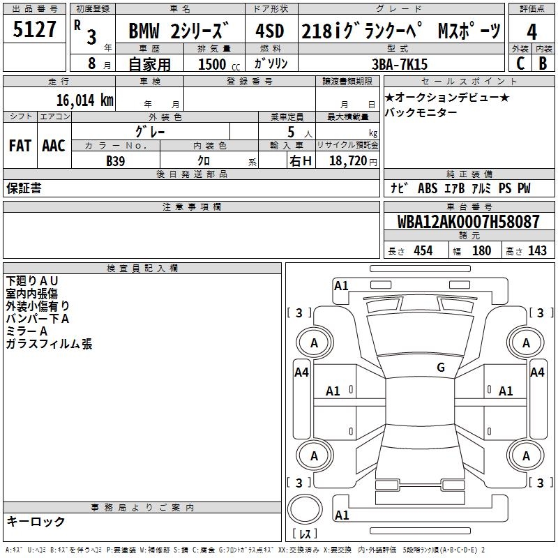 BMW 2 SERIES 218I GRAN COUPE M SPORT - лот 5127