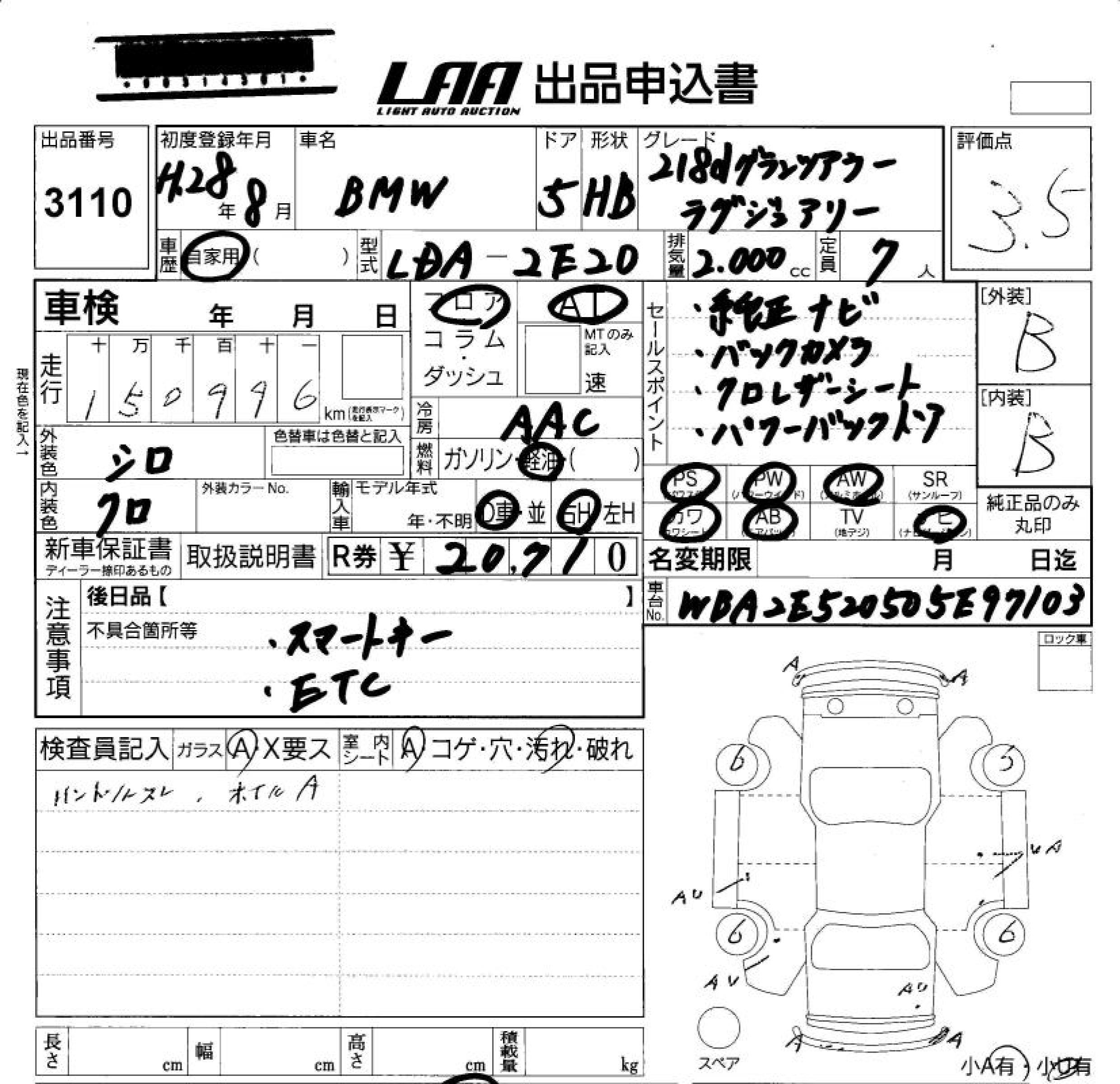 BMW 2 SERIES 218D GLANZA LA- RUG JI - лот 3110