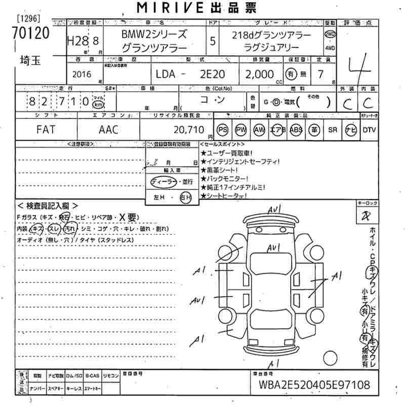 BMW 2 SERIES 218D GLANZA LA- LUXURY - лот 70120