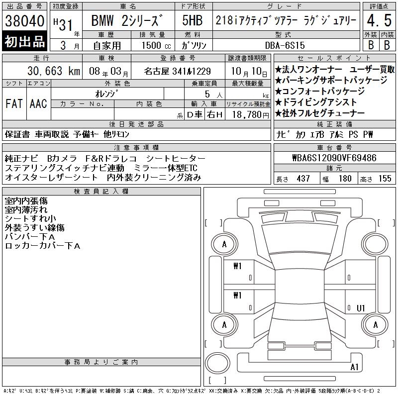 BMW 2 SERIES 218I ACTIVE TOURER LUXUR - лот 38040
