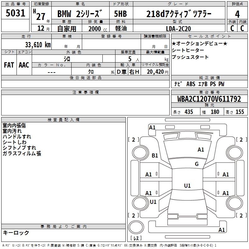 BMW 2 SERIES 218D ACTIVE TOURER - лот 5031