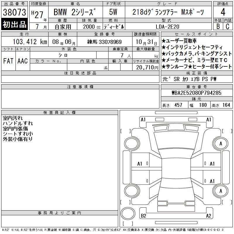 BMW 2 SERIES 218D GLANZA LA-M SPORT - лот 38073