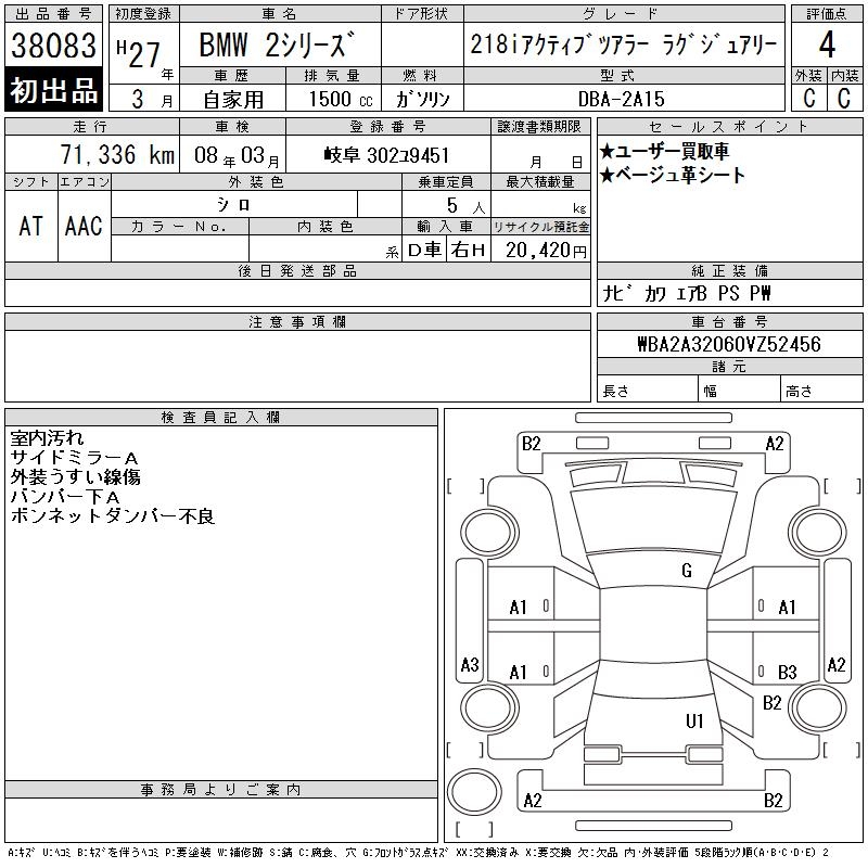 BMW 2 SERIES 218I ACTIVE TOURER LUXUR - лот 38083