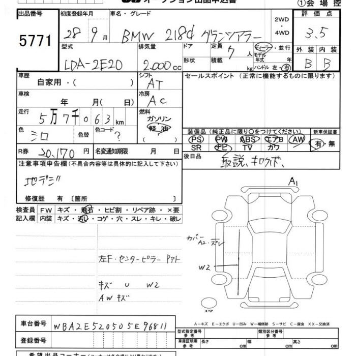 BMW 2 SERIES 218D GLANZA LA- - лот 5771