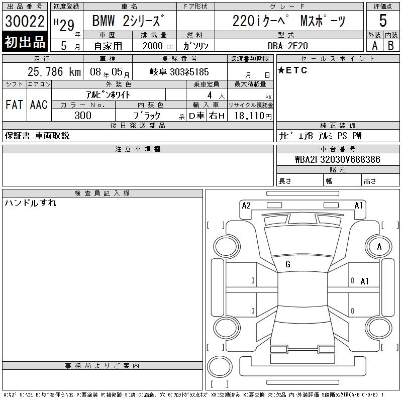 BMW 2 SERIES 220I COUPE M SPORT - лот 30022