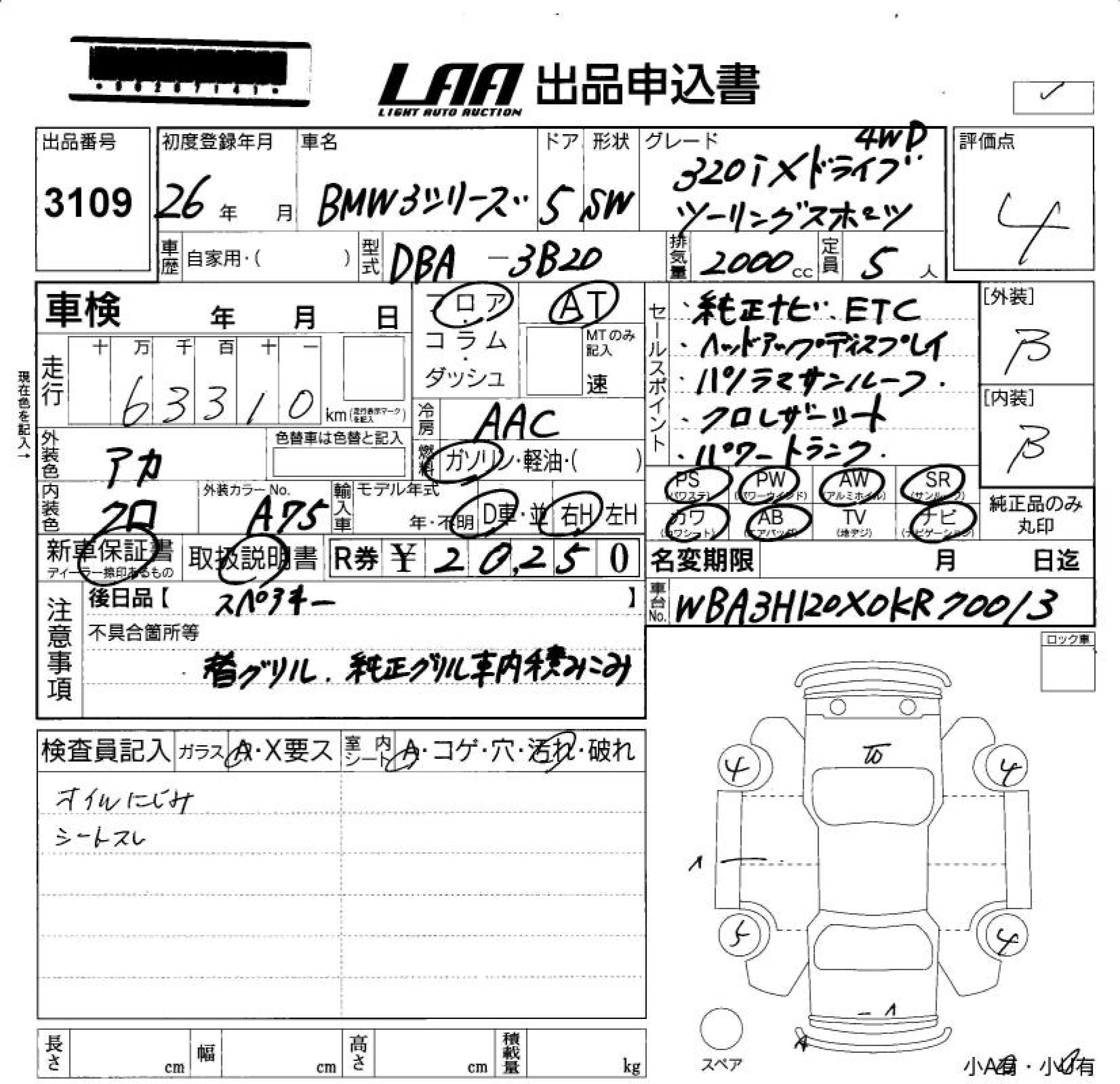 BMW 3 SERIES 320I XDRIVE TOURING - лот 3109